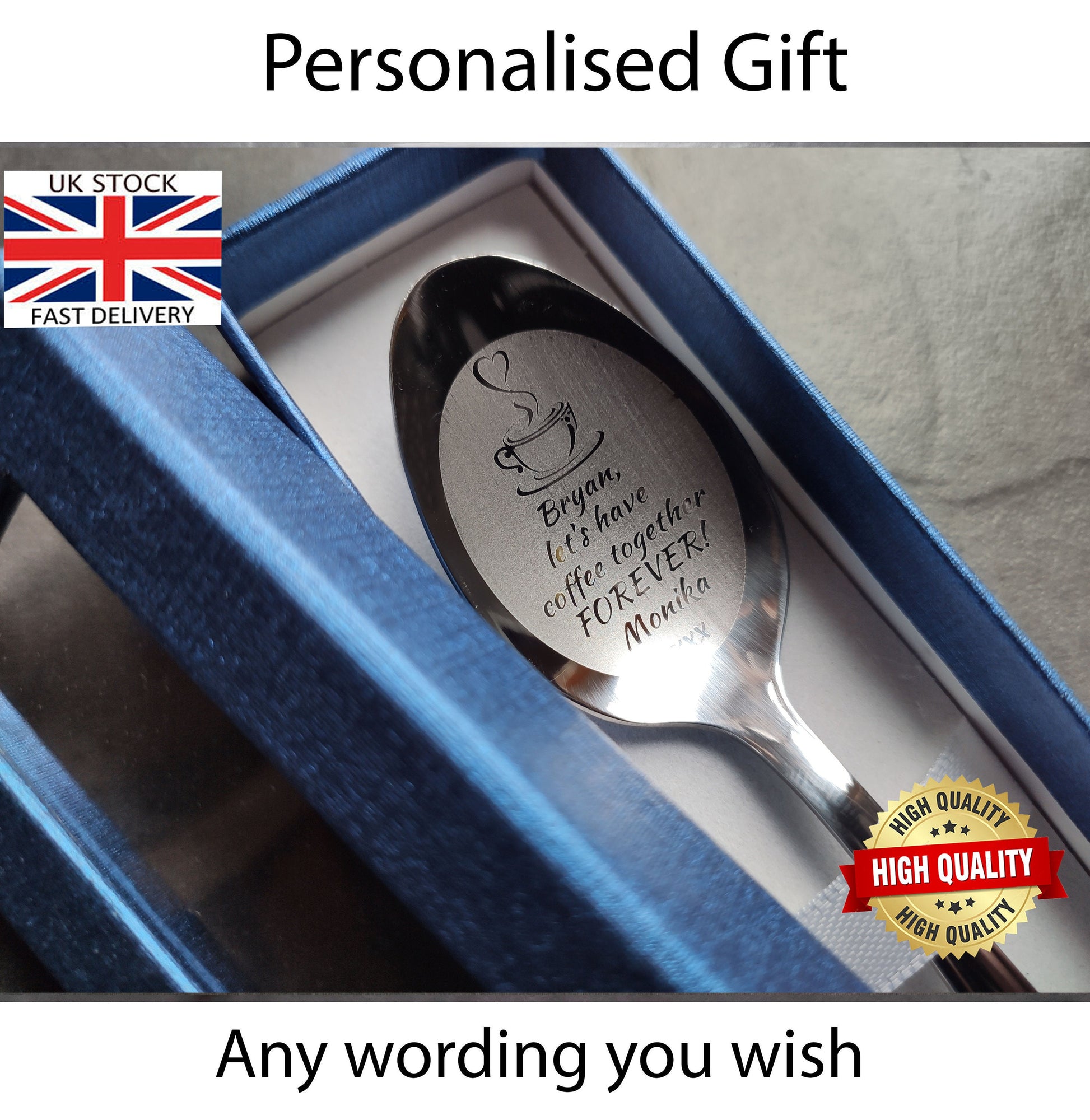 Personalised Custom Engraved Tea Coffee Spoon Romantic Memorable Gift Anniversary Engagement Him Her