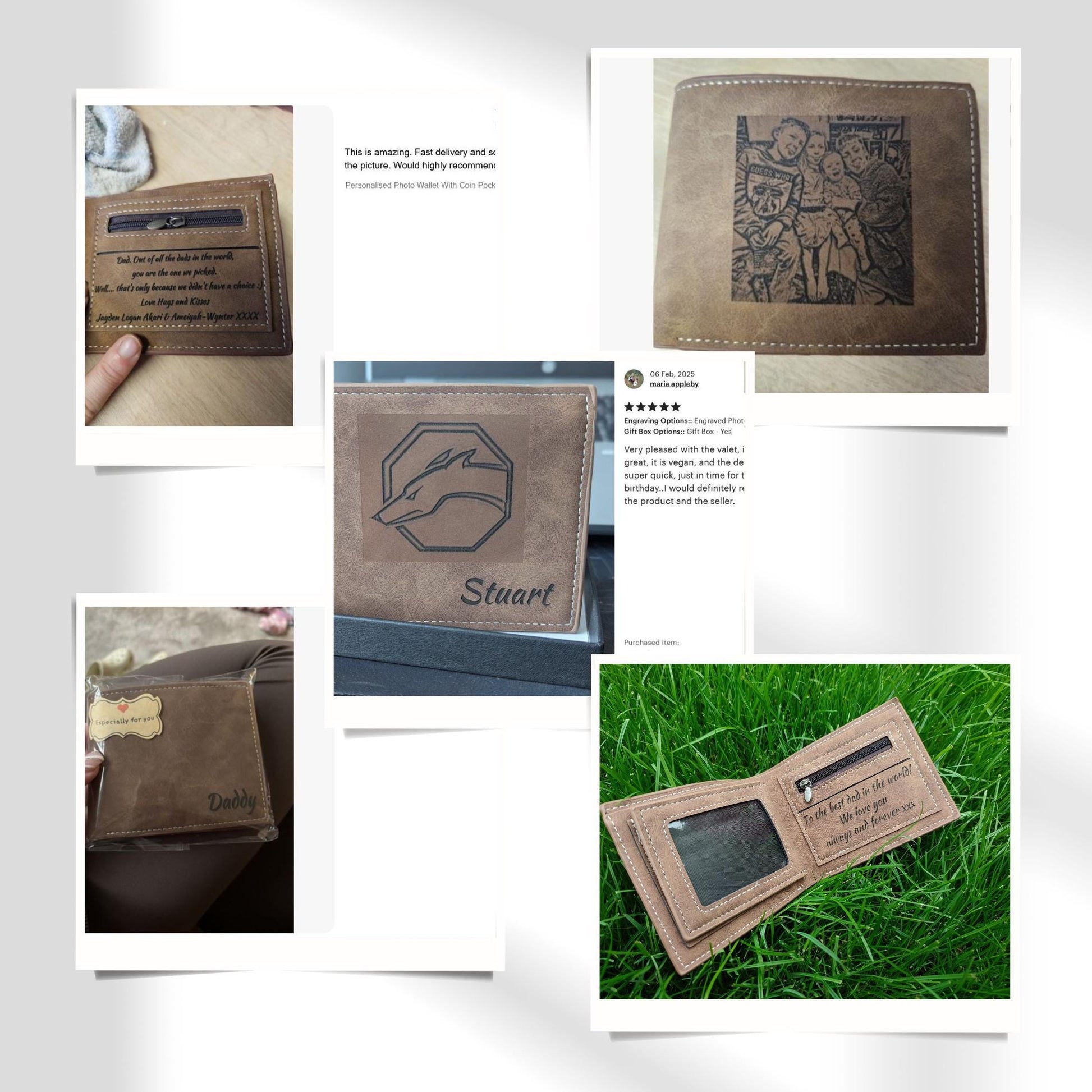 Personalised Photo Wallet With Coin Pocket Best Gift for Men Dad Daddy Grandad Husband Boyfriend Birthday Anniversary Vegan Leather