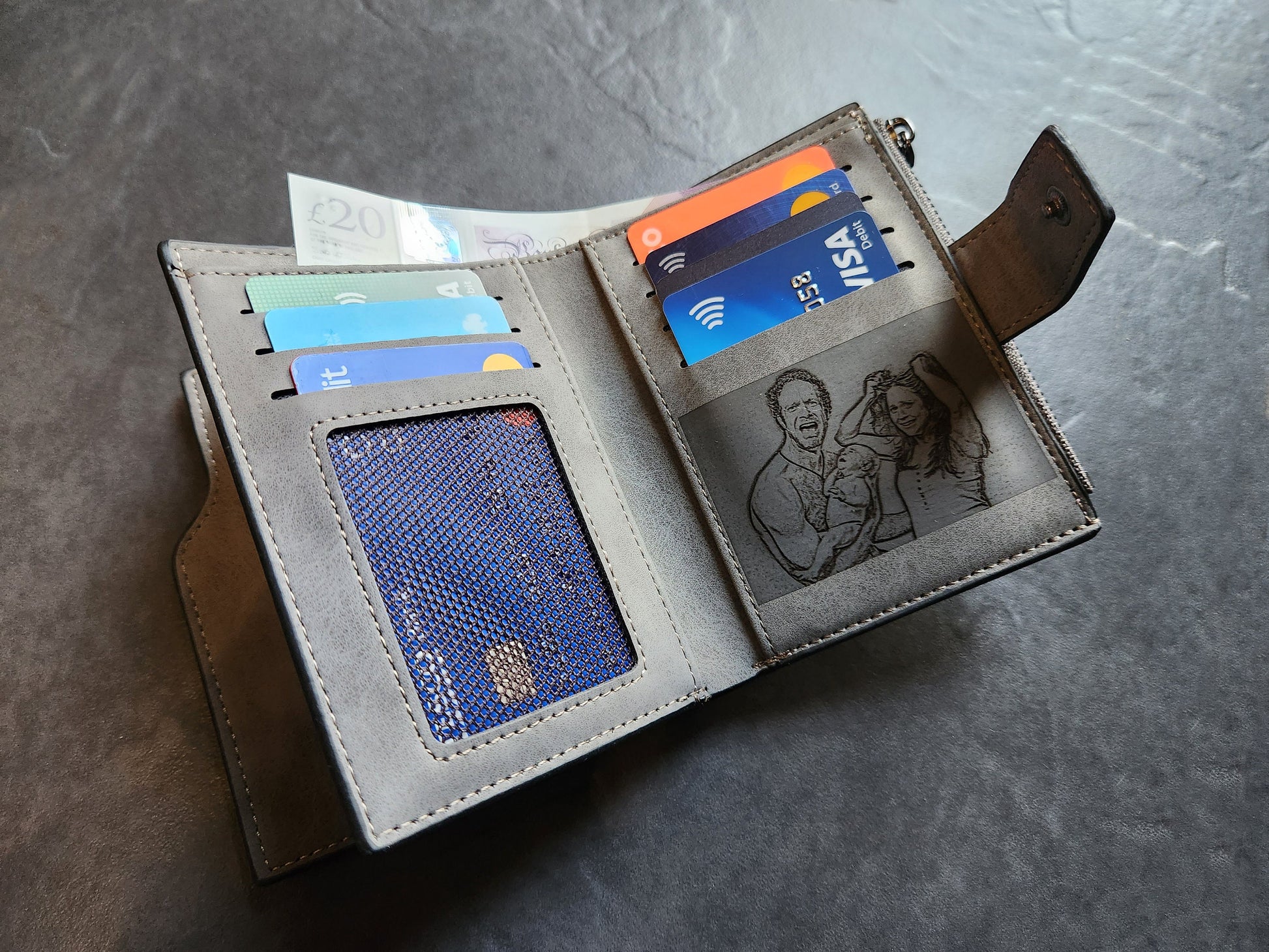 Personalized Photo Wallet: Engraved Vegan Leather Zipper Purse